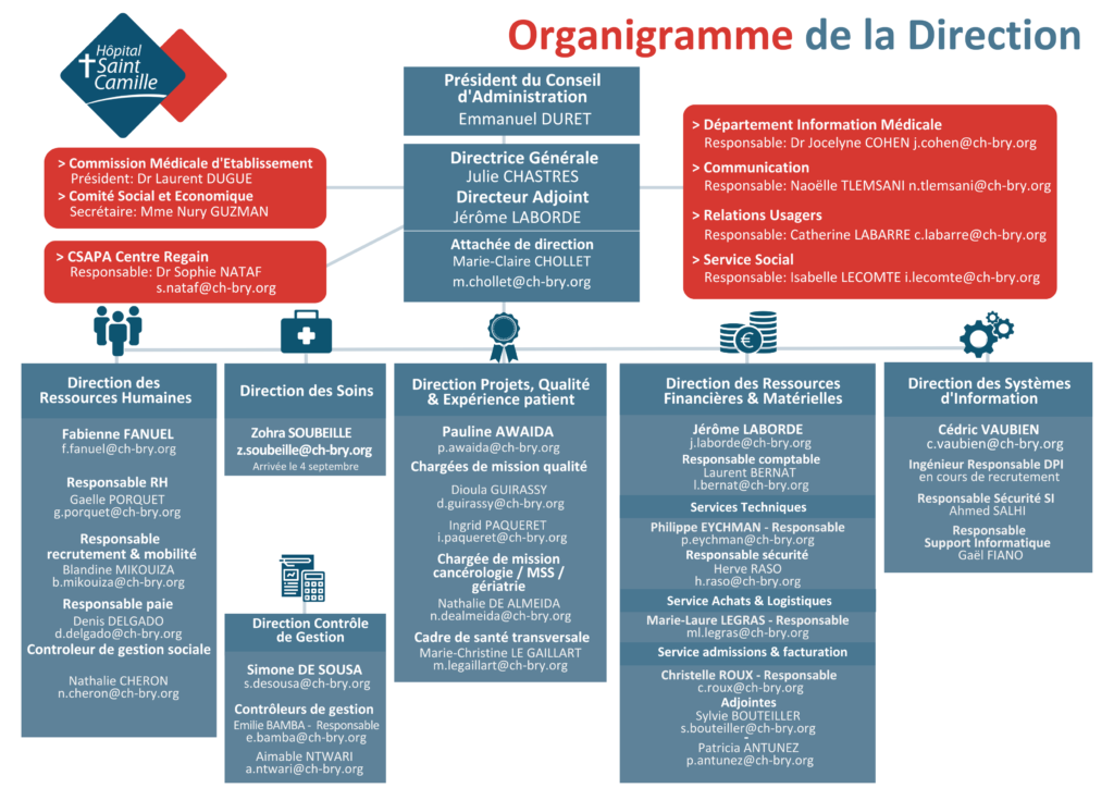 Organigramme de la Direction et des services de soins